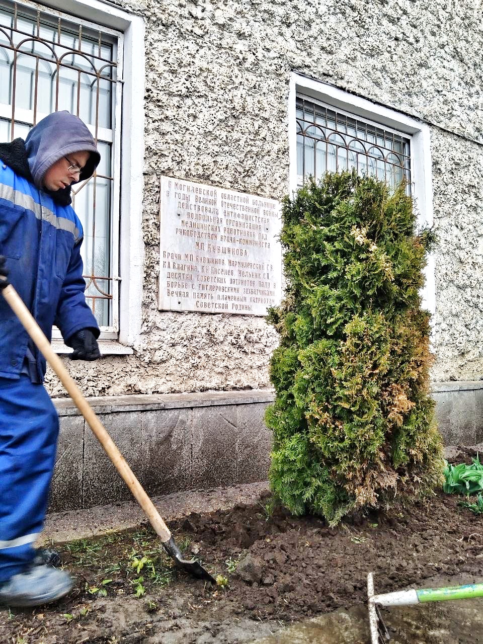 Сотрудники УЗ «Могилевская клиническая больница скорой медицинской помощи» навели порядок у мемориальных досок, установленных в честь военных врачей, которые в годы войны спасали жизни раненых советских солдат и антифашистской подпольной организации медицинских работников.