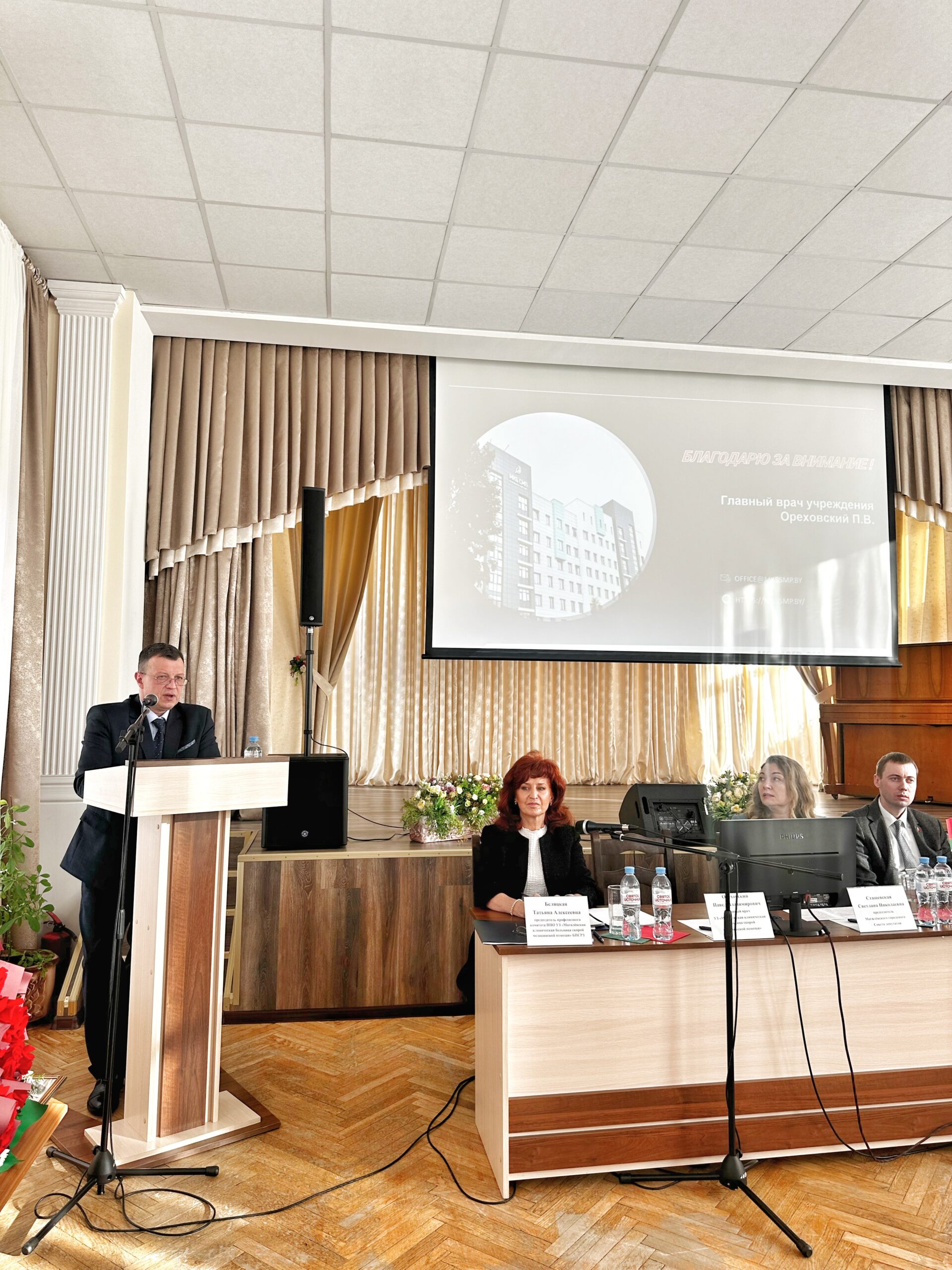 - Главный врач УЗ «МКБ СМП» – Павел Ореховский, отметил положительную динамику по ключевым направлениям деятельности учреждения, отметил достижения и обозначил стратегические задачи на будущее: дальнейшее развитие учреждения, внедрение ряда инноваций, повышение качества оказания медицинской помощи.