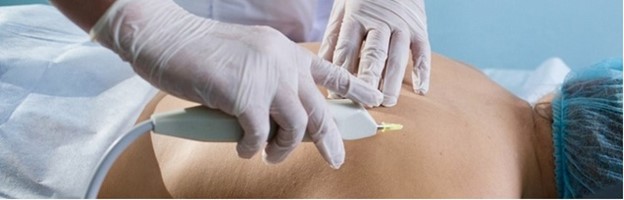 Процедура заключается в подкожном введении медицинского углекислого газа с помощью специального прибора.