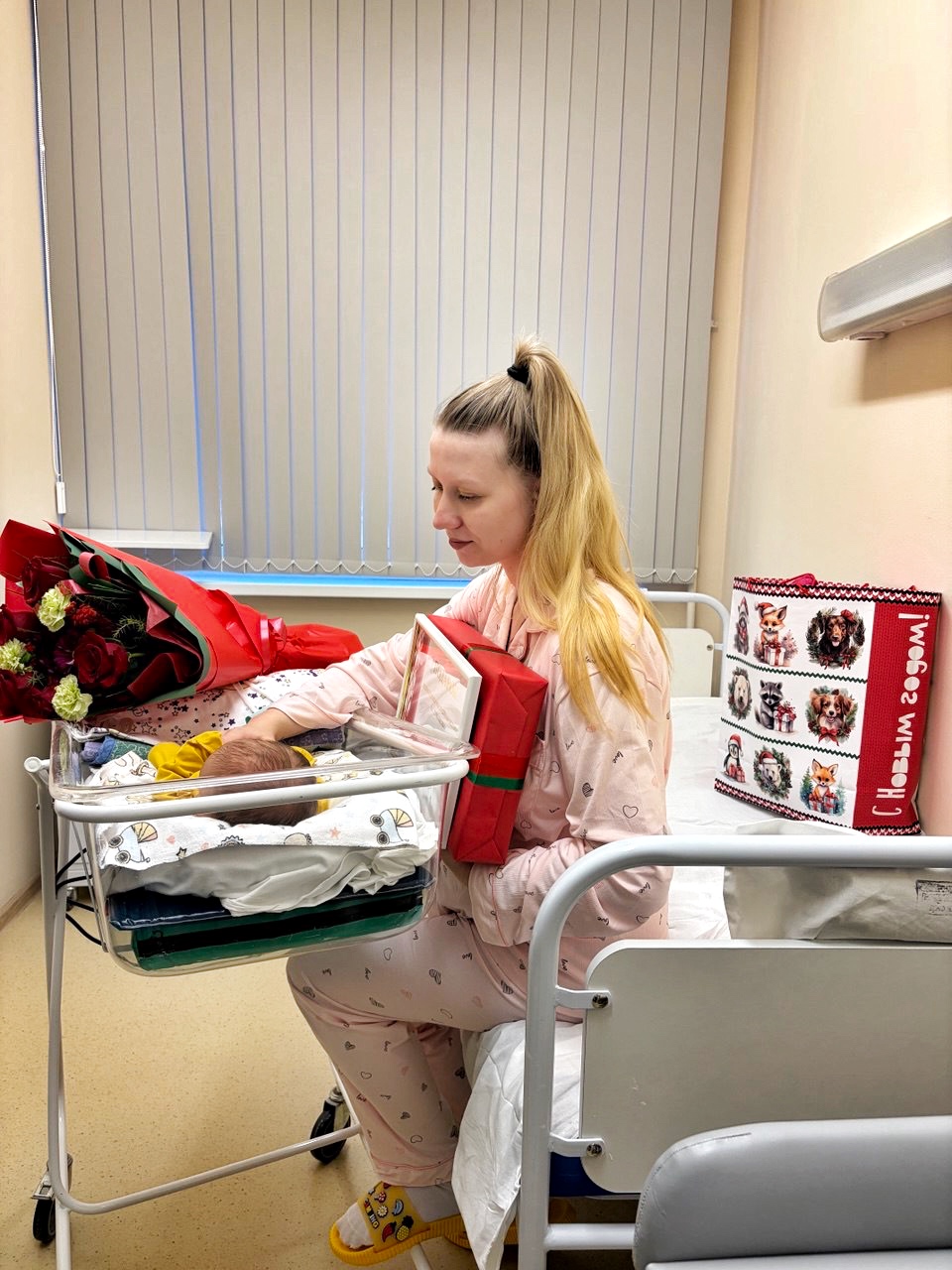 Душевно и тепло 05.01.2026 в УЗ «Могилевская клиническая больница скорой медицинской помощи» поздравили молодую маму, родившую 01.01.2026 в 00.03.